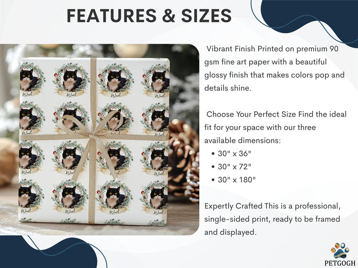 Christmas Pet Gift Wrapping Paper from Photo, Custom Wreath Cat Gift Wrap, Personalized Dog Wrapping Paper, Holiday Pet Gift
