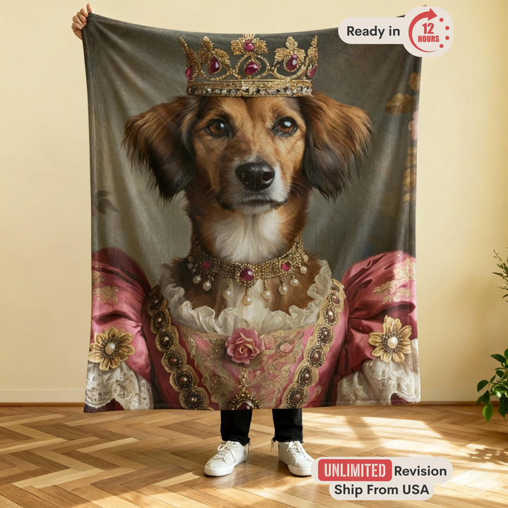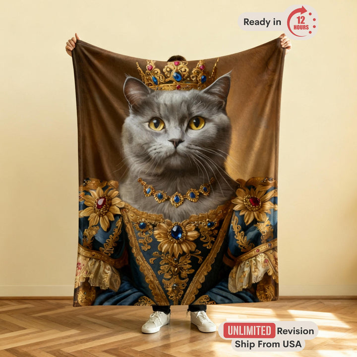 Wrap yourself in comfort and royalty with a Custom Pet Blanket from PetGogh. We transform your favorite pet photo into a majestic masterpiece, portraying your beloved dog or cat as a regal king, queen, or even a royal couple. This personalized fleece throw is a unique and humorous piece of home decor, perfect for snuggling on the couch while honoring the true rulers of your home.