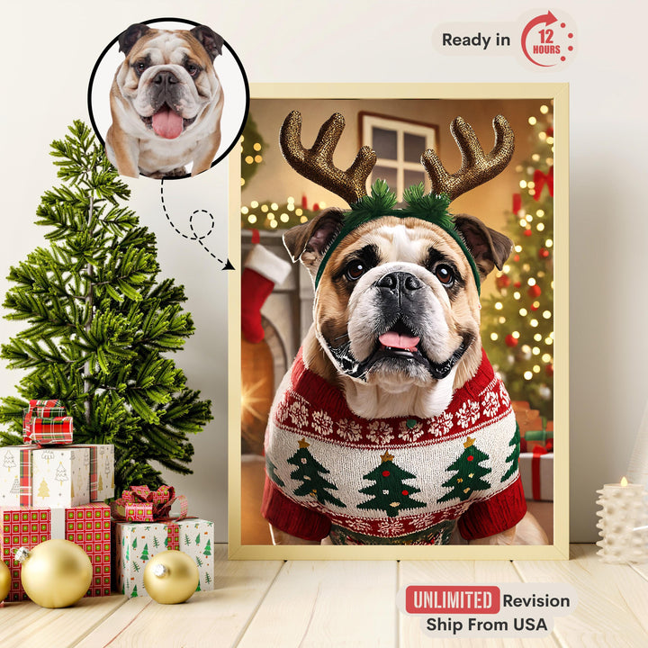 Spread holiday cheer with a Custom Christmas Pet Portrait! We'll take your favorite pet photo and create a funny and festive masterpiece. Imagine your dog or cat wearing a silly Santa hat or a cozy Christmas sweater in a classic oil painting style. This personalized portrait is the perfect piece of Christmas decor to celebrate your furry family member this season and bring a smile to everyone's face.