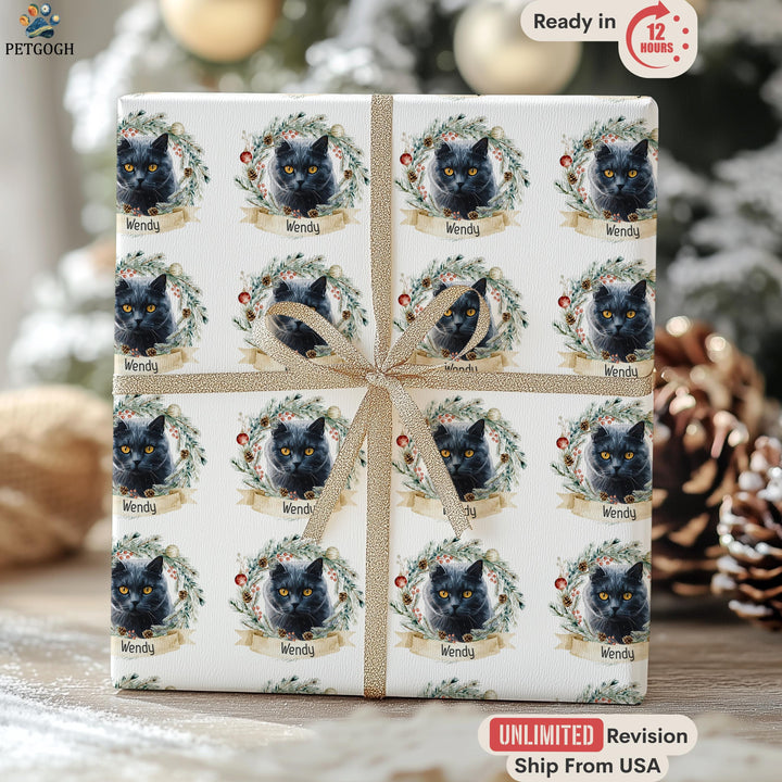 Custom Christmas Pet Wrapping Paper Using Pet Photo, Personalized Dog Wrapping Paper, Christmas Cat Gift Wrap, Custom Pet Gift Wrapping
