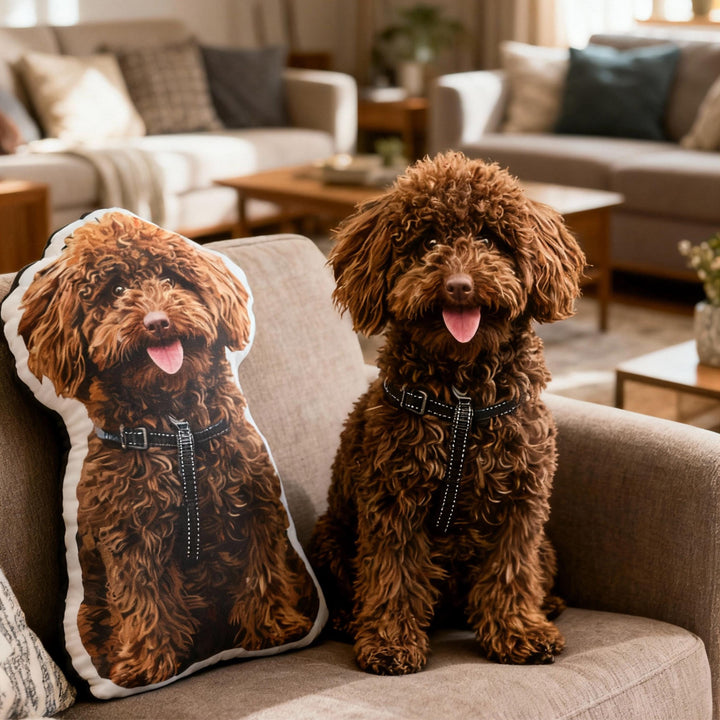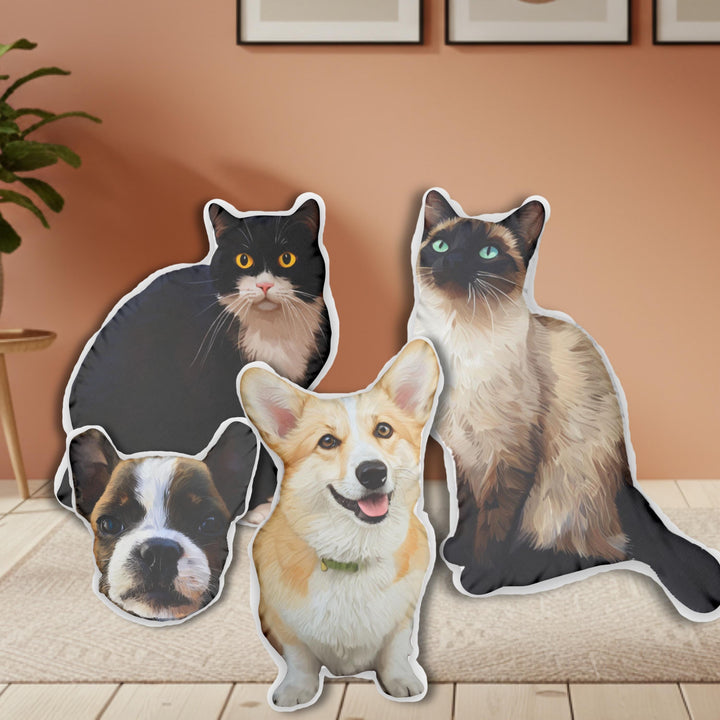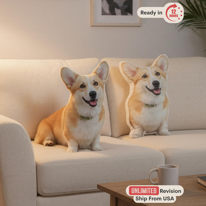 Hold your best friend in your arms anytime with a Custom Shape Pet Pillow from PetGogh. We turn your favorite pet photo into a huggable, lifelike plush replica of your dog or cat. This soft, cuddly look-alike pillow is perfectly cut to match your pet's shape, creating a unique and adorable piece of home decor that brings a smile to your face and is almost as good as the real thing!