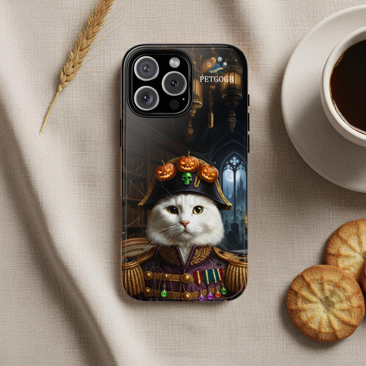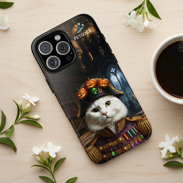 Custom Halloween Cat Case, Napoleon Pet Portrait, Spooky General Phone Case, Personalized iPhone 17 Case, Using Pet Photo, Royal Cat Gift