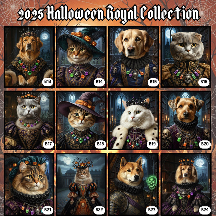 Custom Halloween Pet Portrait, Dark Royalty Cat Art, Spooky Wall Decor, Funny Pet Gift, Gift for Him, Cat Dad Gift