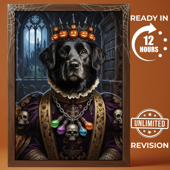 Custom Halloween Pet Portrait, Funny Black Dog Art, Spooky Wall Decor, Pet Owner Gift, Custom Pet Memorial