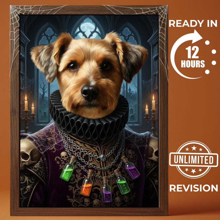 Custom Halloween Pet Portrait, Vampire Dog Painting, Spooky Gothic Cat Art, Alchemist Potion Decor, Pet Lover Gift