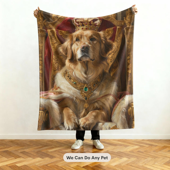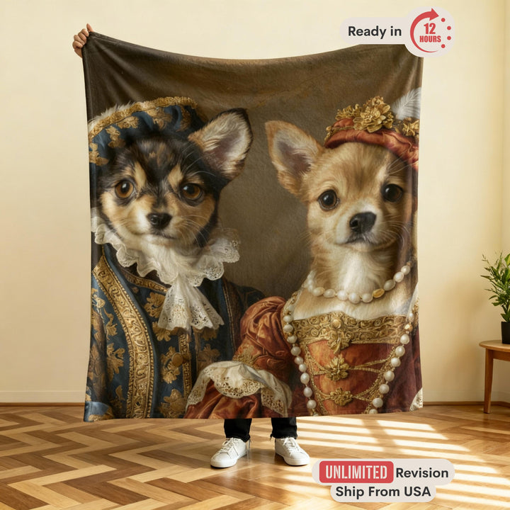 Custom King Queen Blanket, Personalized Pet Portrait from Photo, Regal Dog Cat Art, Couple Gift