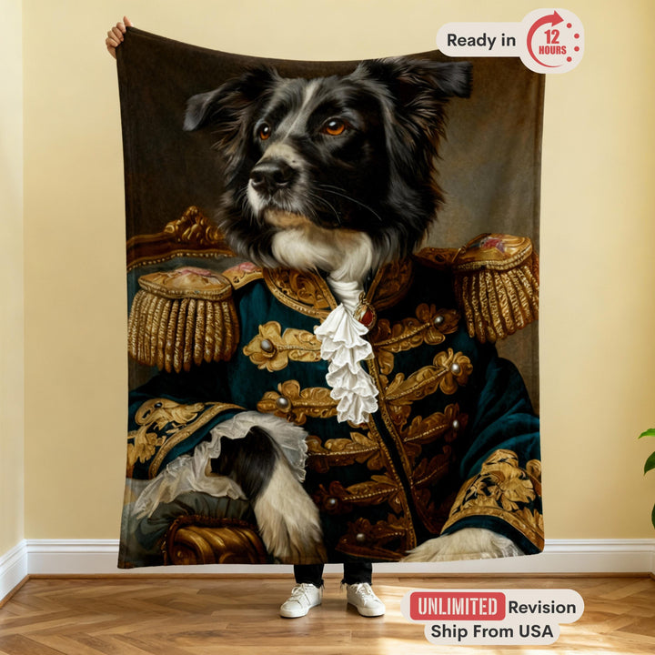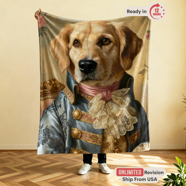 Wrap yourself in comfort and royalty with a Custom Pet Blanket from PetGogh. We transform your favorite pet photo into a majestic masterpiece, portraying your beloved dog or cat as a regal king, queen, or even a royal couple. This personalized fleece throw is a unique and humorous piece of home decor, perfect for snuggling on the couch while honoring the true rulers of your home.