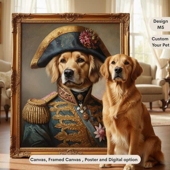 Celebrate your pet's majestic presence with a Custom Royal Pet Portrait from PetGogh. We take your favorite photo and artistically transform your companion into the regal queen of the castle or the noble king of your home. This personalized masterpiece is designed to capture your pet's unique charm in a timeless, historical style, creating a stunning piece of home decor that is guaranteed to warm your heart and bring a smile to everyone's face.
