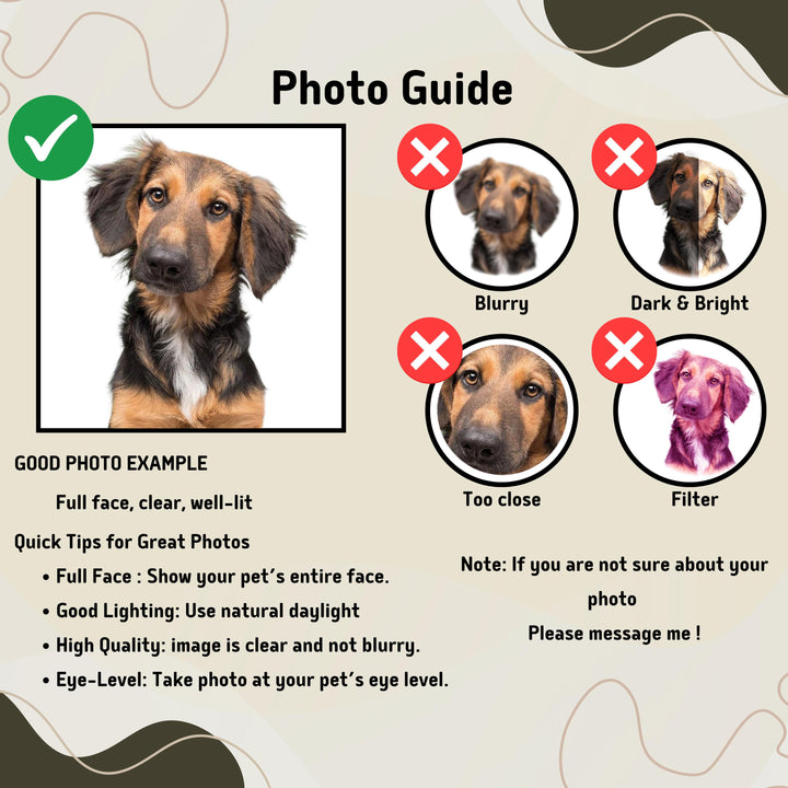 Send Your Photo: After placing your order, click on "Contact Shop" and attach your pet's photo.
