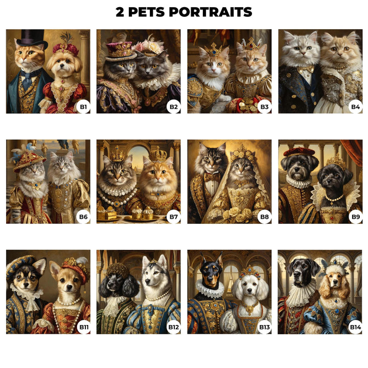With our special Royal Pet Portrait, transform your beloved pet into an elegant Renaissance-style oil painting. Celebrate your pet's unique personality with a regal work of art and add a distinctive touch to your home decor. This personalized portrait is the perfect gift for pet lovers or a unique art piece for a special corner in your home.