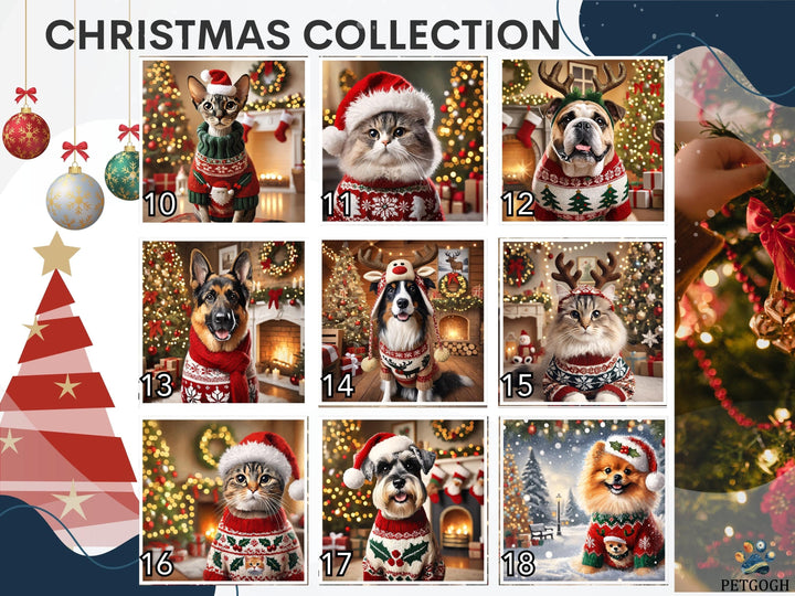 Spread holiday cheer with a Custom Christmas Pet Portrait! We'll take your favorite pet photo and create a funny and festive masterpiece. Imagine your dog or cat wearing a silly Santa hat or a cozy Christmas sweater in a classic oil painting style. This personalized portrait is the perfect piece of Christmas decor to celebrate your furry family member this season and bring a smile to everyone's face.