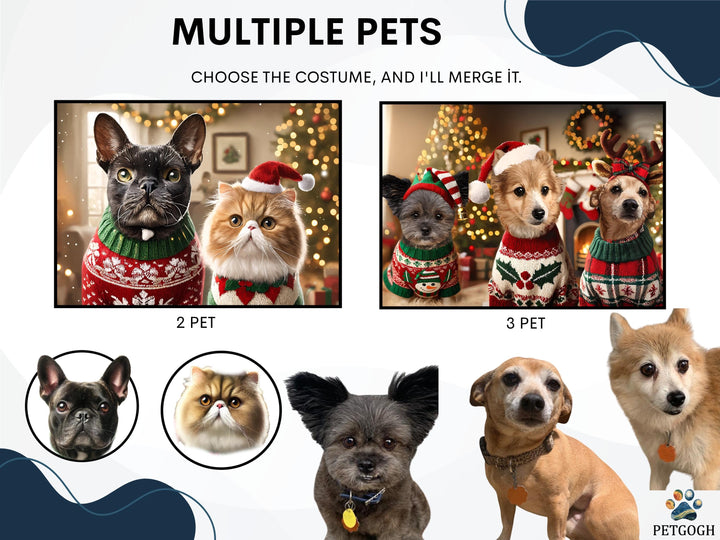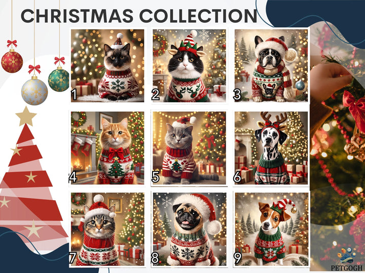 Spread holiday cheer with a Custom Christmas Pet Portrait! We'll take your favorite pet photo and create a funny and festive masterpiece. Imagine your dog or cat wearing a silly Santa hat or a cozy Christmas sweater in a classic oil painting style. This personalized portrait is the perfect piece of Christmas decor to celebrate your furry family member this season and bring a smile to everyone's face.