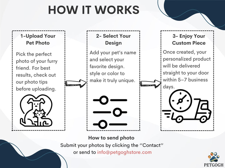After placing your order, send us your pet's photo via Etsy Messages. For the best results, please review our photo guidelines in the images!