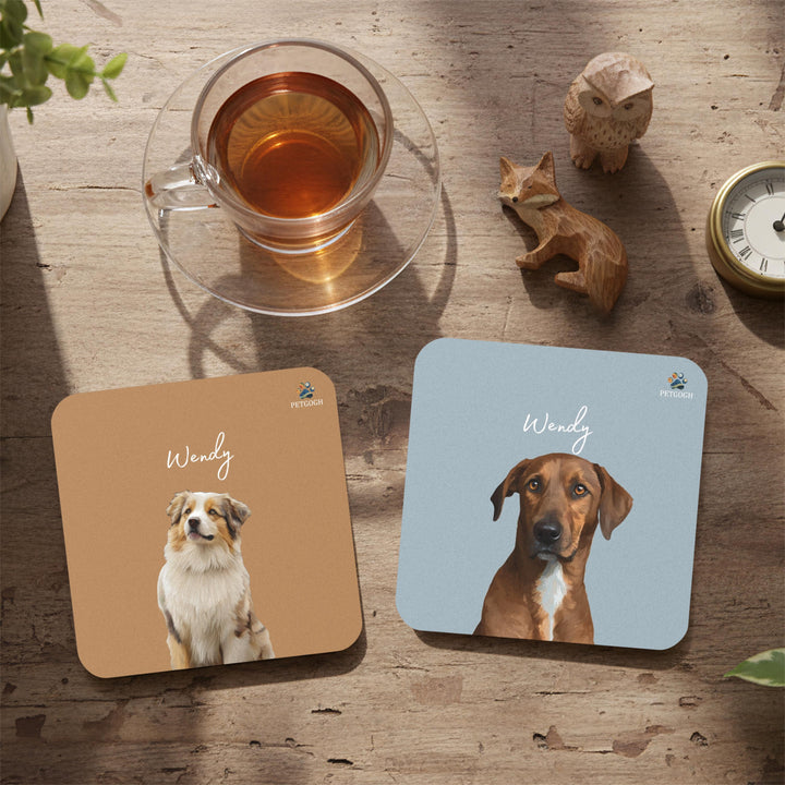 Celebrate the unique bond between you and your pet with a modern, artistic design that will complement any room. Featuring a custom portrait created with Petgogh's signature artistic touch, these coasters bring your best friend's adorable face to your table. It will become your favorite coaster to place a drink on after a long day and is guaranteed to be a conversation starter with your guests. These tastefully designed coasters, which include your pet's name, are an ideal gift for dog lovers, a thoughtful pet memorial gift, or an unforgettable present for any pet owner.