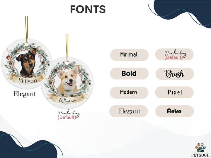 Celebrate your furry friend this holiday season with a beautiful Custom Pet Wreath Ornament. We turn your favorite pet photo into a stunning watercolor-style portrait, framed by a festive Christmas wreath design. Personalized with your pet's name on a classic banner, this Christmas ornament is a timeless piece of decor for your tree that beautifully captures the spirit of your companion.