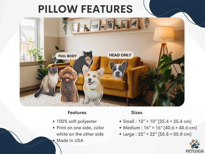 Hold your best friend in your arms anytime with a Custom Shape Pet Pillow from PetGogh. We turn your favorite pet photo into a huggable, lifelike plush replica of your dog or cat. This soft, cuddly look-alike pillow is perfectly cut to match your pet's shape, creating a unique and adorable piece of home decor that brings a smile to your face and is almost as good as the real thing!