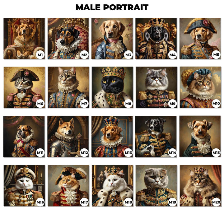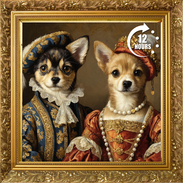 With our special Royal Pet Portrait, transform your beloved pet into an elegant Renaissance-style oil painting. Celebrate your pet's unique personality with a regal work of art and add a distinctive touch to your home decor. This personalized portrait is the perfect gift for pet lovers or a unique art piece for a special corner in your home.